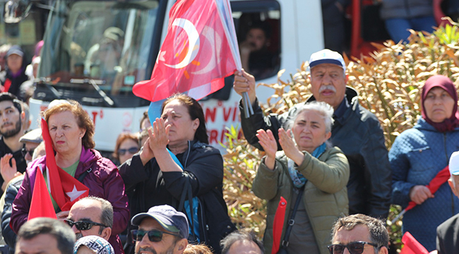 Mitingde konuşmaya Mansur Yavaş başladı. Ankara Büyük Şehir Belediye Başkanı Yavaş, ”Son günlerde anketler bir şey gösteriyor ki tarzlar değişti, seçim zamanı milliyetçilik dozu arttırılır, muhafazakarlık arttırılır. Ben diyorum ki bakın başarılı olacaksanız bunlara hiç gerek yok. Biz kazandığımızda dedik ki ”Sevgili Ankaralılar biz 25 yıllık yönetimi devirdik ama zafer kazandık demiyoruz. Bize oy veren vermeyen herkesi kucaklıyoruz dedik. Biz yaptığımız her hizmette gönül rahatlığıyla devam ettik. Şimdi İktidar tarafından, zillet, illet, terörist olarak adlandırılıyoruz. Bunun adı siyaset değildir, bunlar sıkıştıkça bu siyasete başvuruyorlar. 25 Yıldır Ankara’da öyle bir rant düzeni kurulmuş ki bu şekilde kul hakkını bile muhafazakar insanlara kabul ettirdiler. Bizi pkk’lı olmakla suçladılar, Belediyede PKK’lıları çalıştırmakla suçladılar. Ben şimdi soruyorum ne işi var PKK’nın Ankara Belediyesin’de ? Bunlar seçim öncesi önde olduğumuzu görünce atılan iftiralardır. Dediler ki İstanbul giderse Kudüs düşer, Mekke düşer baktılar ki hiç bir şey olmadı.