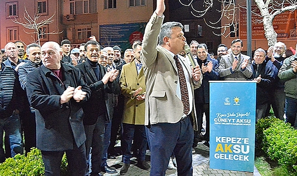 Ak Parti Ak Parti Başkan Adayı Cüneyt Aksu perşembe gecesi düzenlediği kahve toplantısı adeta miting havasında geçti.