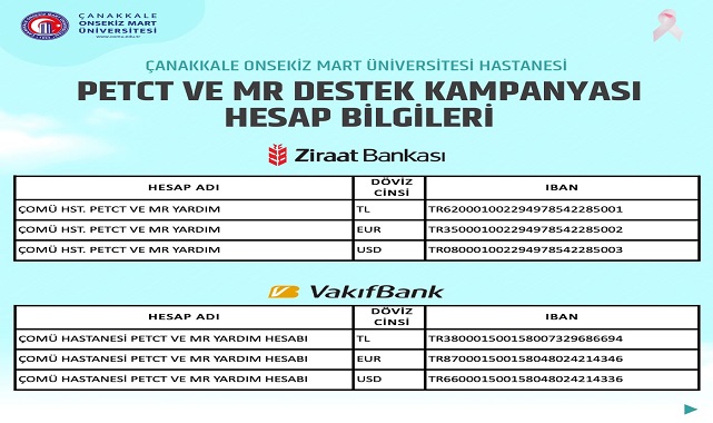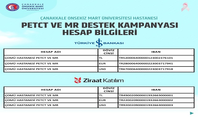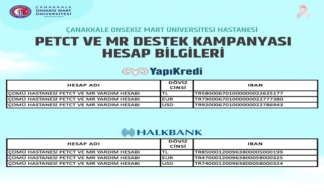 Çanakkale Onsekiz Mart Üniversitesi (ÇOMÜ) Sağlık Uygulama ve Araştırma Hastanesi Başhekimi Doç. Dr. Hasan Ali Kiraz, hastane olarak uzman kadrosu ve tecrübeli sağlık ordusuyla bölge halkının hizmetinde olduklarını ifade etti. Daha kaliteli hizmet sunabilmek için her zaman yenilikleri takip ettiklerini belirten Doktor Kiraz, yeni bir Pet-BT ve MR cihazı alımı için kampanya başlattıklarını duyurdu ve kampanyaya destek istedi.