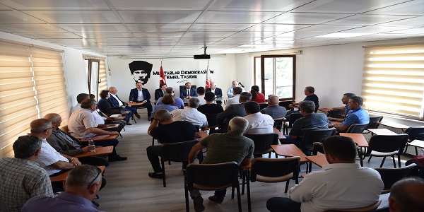 Sohbet ortamında geçen ziyaret sonunda Başkan Erkek, muhtarlar için yaptırılan rozeti Dernek Başkanı Göçoğlu'na takdim etti.