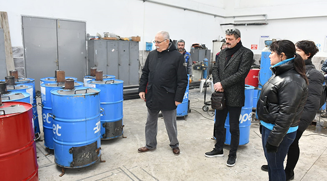 Depremden hasar gören bölgelere gönderilmek üzere Çanakkale Belediyesi Teknik Hizmetler Kampüsünde bulunan metal atölyesinde başlatılan soba imalatı çalışmaları tüm hızı ile devam ederken, Belediye Başkanı Ülgür Gökhan da çalışmaları yerinde inceledi.