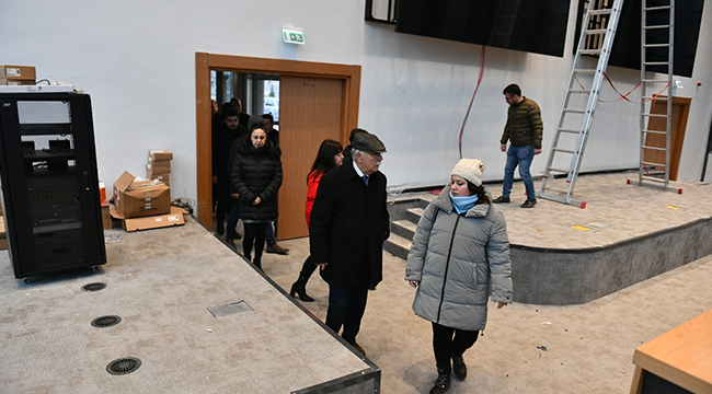 Belediye Başkan Yardımcıları ve teknik ekip eşliğinde kısa süre içerisinde kentlilere hizmet vermeye başlayacak olan Yeşil Yerel Yönetim ve Kültür Merkezi Binasındaki son hazırlık çalışmalarını ve düzenlemeleri inceleyen Başkan Gökhan, binadaki son duruma ilişkin bilgi aldı.