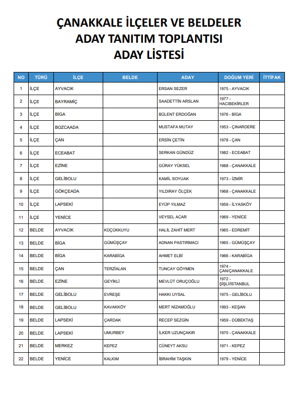 AK Parti Çanakkale’de İlçe ve Belde Belediye Başkan Adaylarını belirledi.