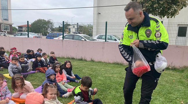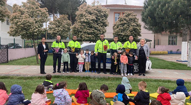 BİGA'DA MİNİKLER TRAFİK KURALLARI KONUSUNDA BİLGİLENDİRİLDİ