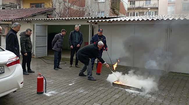 Biga Belediyesi İtfaiye Müdürlüğü tarafından şehirdeki kamu kurumlarının personeline yangın eğitim verildi ve ardından tatbikat yapıldı.