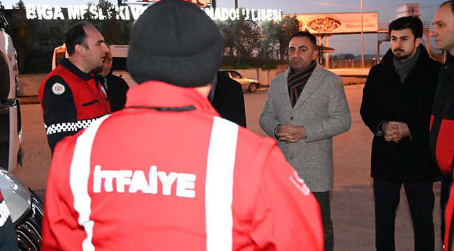 Bigalı vatandaşların yardımlarının bölgeye sevki için Atatürk Kültür Merkezi'ndeki çalışmalar özveriyle devam ederken, son olarak 3 yardım aracı ve Biga Belediyesi itfaiye ekipleri deprem bölgesine gönderildi.