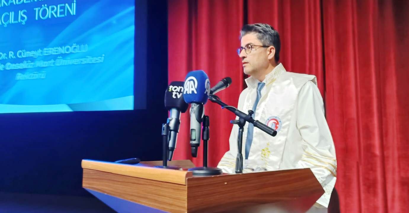 Çanakkale Onsekiz Mart Üniversitesi’nde 2025-2026 Akademik Yılı törenle açıldı. Törende konuşan Rektör Prof. Dr. R. Cüneyt Erenoğlu, yeni dönemin başarılarla dolu geçmesi temennisinde bulundu. Program, Kale Grubu Yönetim Kurulu Başkan Vekili Dr. (hc) Osman Okyay’ın verdiği akademik dersle sona erdi.