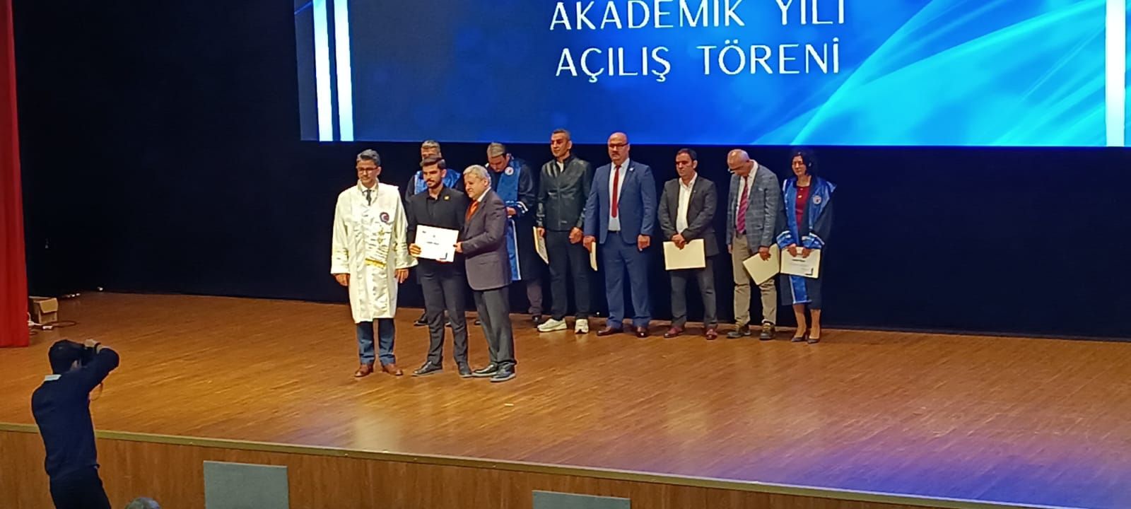 Törende ayrıca üniversiteye katkı sunan dış paydaşlara plaket takdimi yapıldı. Bu kapsamda Rektör Erenoğlu, Belediye Başkanı Muharrem Erkek’e teşekkür plaketi takdim etti.