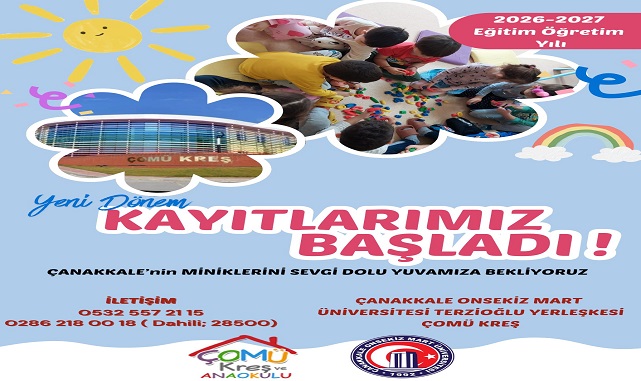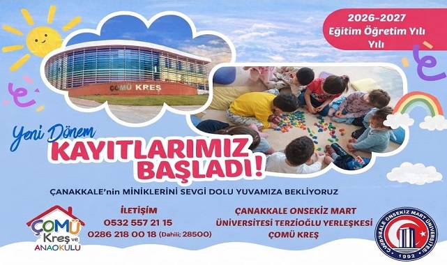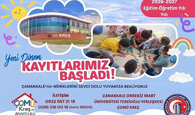 Çanakkale Onsekiz Mart Üniversitesi (ÇOMÜ) bünyesinde hizmet veren ÇOMÜ Kreş ve Anaokulu, 2026–2027 eğitim öğretim yılı için yeni dönem kayıtlarının başladığını duyurdu. Terzioğlu Yerleşkesi’nde bulunan kurum, okul öncesi eğitim alanında sunduğu modern programları ve deneyimli kadrosuyla ailelerin ilgisini çekiyor.