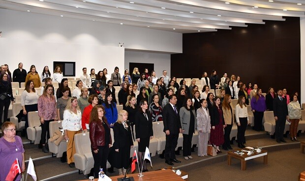 Çanakkale’nin Emekçi Kadınları ile 8 Mart Söyleşisi, TOBB Çanakkale Kadın Girişimciler Kurulu Başkanı Birce Bilici Şimşek’in açılış konuşması ile başladı. TOBB Çanakkale Kadın Girişimciler Kurulu Başkanı Birce Bilici Şimşek; “Bizler üreten, yaratan, koruyan kadınlarız. Toplumun en önemli şekillendiricisiyiz. Hayatta en değerli olan insan kaynağını biçimlendireniz. Geleceğimiz olan çocuklarımızın iyi yetiştirilebilmesi, aileye katkı sağlayabilmesi, toplumumuzun gelişip büyüyebilmesi için eğitimli ve kendi ayakları üzerinde durabilen kadınlarımıza ihtiyacımız var. Tüm dünyada tartışılan kadın kimliği, ülkemizde kültürel, ırksal, mezhepsel ve dini benzeri farklılıkları içerisinde algılanmakta ve bu farklılıkları ile gerek sosyal, gerekse siyasal hayatımızı zenginleştirmektedir. Bizde Çanakkaleli kadınlar olarak Cumhuriyet döneminde Çanakkale’miz de doğmuş, yetişmiş ve toplumsal yaşamda iz bırakan kadınlarımızı sizlerle birlikte bir sergiyle anmak istedik. Adalet Cimcoz, Aliye Uzunatağan, Fatma Rafet Angın, Hahife Çetiner, Mualla Mukadder Atakan, Saniye Can, Suna Keskin ve Zekiye Gülsen dahil kıymetli sekiz kadınımıza yer verdik. Ama daha niceleri olduğunu ve onların yaşam hikayelerini paylaşarak gelecek nesillere aktarmanın ve hatırlatmanın emekçi kadınlar olarak bizlerin sorumluluğunda olduğunu biliyoruz. Ben bir Türk kadını olarak, kadın duyarlılığının, kadın sevgisinin ve kadının mücadeleci ruhu ile önüne gelebilecek her türlü engeli aşabileceğini inanıyorum. Tüm dünyaya öncülük ederek bizlere seçme ve seçilme hakkını tanıyan, Cumhuriyetimizin kurucusu Ulu Önderimiz Gazi Mustafa Kemal Atatürk’ün ‘Büyük başarılar, değerli anaların yetiştirdikleri seçkin evlatlar sayesinde olmuştur. Dünya üzerinde gördüğümüz her şey, kadının eseridir. Toplum hayatının kaynağı, çağdaş aile hayatıdır. Siyasal ve toplumsal hakların kadın tarafından kullanılmasının, insanlığın mutluluğu ve saygınlığı açısından gerekli olduğuna inanmaktayım’ sözleri ile yetişmiş bir nesil olarak, her cephede mücadele eden, emek veren tüm kadınlarımızın 8 Mart Dünya Emekçi Kadınlar Günü'nü kutluyor, Çanakkale'mizin tüm kadınlarına en içten sevgi, saygı ve selamlarımı sunuyorum” dedi.