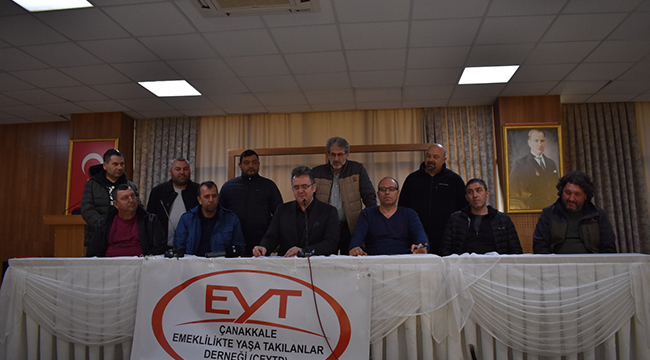 Başkan Çağlayan “Emeklilik hakları 2 ile 17 yıl arasında ötelenen hak sahipleri olarak, yola inanmışlarla çıkılır, ikna edilmişlerle değil diyerek, 16 Temmuz 2019 tarihinde Çanakkale Emeklilikte Yaşa Takılanlar Derneğini kurduk. Sizlerin de bildiği gibi 28.12.2022 tarihinde Cumhurbaşkanı Sayın Recep Tayyip Erdoğan’ın açıklamalarıyla, kazanılmış haklarımızın tekrar iade edileceği ifade edilmişti ve dün itibariyle de bir yanımız yarım kalsa da EYT yasası TBMM Genel Kurulu’nda oybirliği ile kabul edilip yasalaştı.