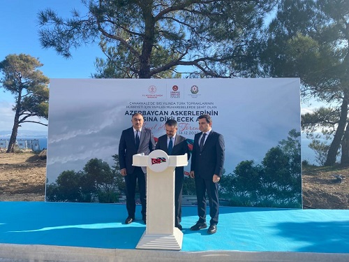 Vali İlhami AKTAŞ, Azerbaycan Cumhuriyeti’nin Ankara Büyükelçisi Dr. Reşad MEMMEDOV ve Çanakkale Savaşları Gelibolu Tarihi Alan Başkanı İsmail KAŞDEMİR ve protokol üyeleri tarafından Azerbaycan Anıtı’nın temeli dualarla ve hayırlı olsun temennileriyle atıldı.