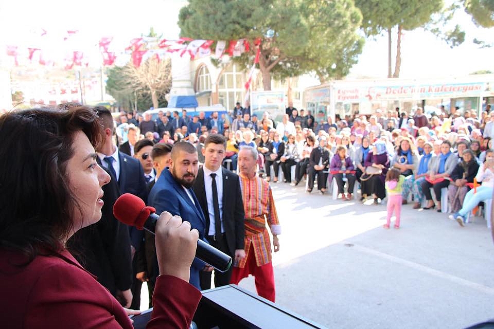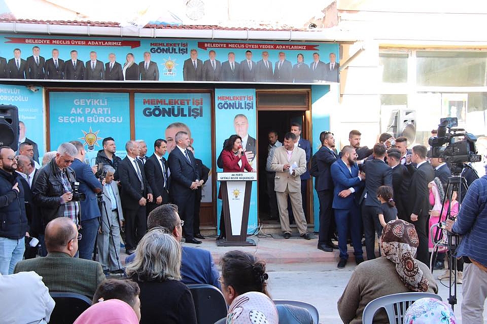 “Burası hizmetlerle, Mevlüt Başkanımızla, AK Parti ile şahlanacak bir belde. Bu güzel belde; tarih, turizm, tabiatın başkenti. Ancak sizlerin Mevlüt Başkanımıza ve dolayısı ile projelerine vereceğiniz destek ile Geyikli'yi marka bir belde yapmak istiyoruz. Belediyecilik bizim işimiz. Belediyecilik AK Parti’nin işi. Bizim yapacak çok işimiz var.