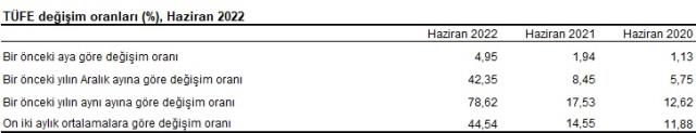 Haziran 2022'de, endekste kapsanan 144 temel başlıktan (Amaca Göre Bireysel Tüketim Sınıflaması-COICOP 5'li Düzey), 12 temel başlığın endeksinde düşüş gerçekleşirken, 3 temel başlığın endeksinde değişim olmadı. 129 temel başlığın endeksinde ise artış gerçekleşti.