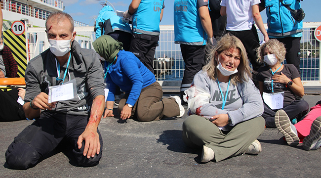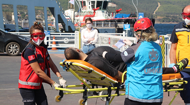 Eceabat’tan Sahil Güvenlik botu ile senaryo gereği Çanakkale İskele’ye intikal ettirilen yaralılar, ilk müdahalenin ardından, ambulanslar ile hastaneye götürüldüler. İskele Meydanı’nda uluslararası ekiplerinde katılımları ile tatbikat bir anlamda gerçeğini aratmazken, ambulanslar ile Çanakkale trafiğine hızlı bir şekilde ne kadar sürede hastaneye gidebildiklerini test etmiş oldular. Şehir içerisinde ekstra bir önlem alınmadan, spontane şekilde gerçekleşen tatbikatlarda, hem ilk yardım hem de koordinasyon bir anlamda sınavdan geçmiş oluyor.