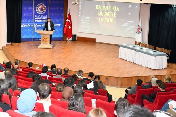 Rektör Prof. Dr. R. Cüneyt Erenoğlu ise bağımlılık ile mücadelenin çok önemli bir konu olduğunun altını çizerek; “Bildiğiniz gibi her yaştan insanı tehdit eden uyuşturucu, alkol, dijital etkenler gibi bağımlılıklar bireyin ve toplumun hayatını olumsuz yönde etkiliyor. Sorunun çözümü için Çanakkale Onsekiz Mart Üniversitesi olarak üzerimize düşeni yapmaya kararlıyız. Düzenlediğimiz etkinliğin amacı, farkındalığı arttırmak ve bu konuda uzmanlarımızın görüşlerini almaktır. Bağımlılıkla mücadelede en önemli unsurun farkındalık olduğunun bilincindeyiz. Bununla birlikte bağımlılıkla mücadelenin sadece uzmanların değil hepimizin görevi olduğunu unutmamalıyız. Bağımlılıktan arınmış bir toplum inşa etmek için çalışmaya ve mücadele etmeye devam edeceğiz” dedi.